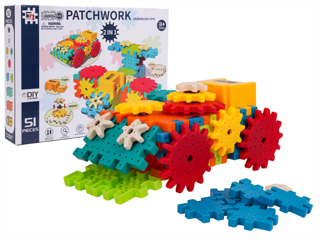 Kreatív és oktató jellegű építőkocka-készlet hároméves vagy annál idősebb gyermekek számára. A készlet 51 darabból áll, amelyekből a gyerekek különféle szerkezeteket építhetnek. A STEAM kockák egymásra rakása fejleszti a kreativitást, az ok-okozati gondolkodást és a problémamegoldó készséget. A gyerekek megtanulják, hogyan befolyásolják az egyes elemek az összképet. Az egyik fogaskerék elforgatása mozgásba hozza a többi fogaskereket, felkeltve a kíváncsiságot és az érdeklődést. A gyerekek fejlesztik a tervezési és térbeli vizualizációs készségeiket. A készlet tartalmaz egy motort, amelyet 2 db AA 1,5 V-os elem működtet (nem tartozék).