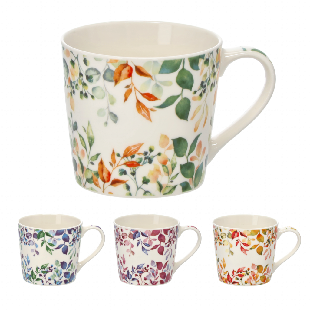 Dobd fel a mindennapi kávé- vagy teázást ezzel a stílusos, levelek mintájával díszített porcelán bögrével! A 400 ml-es űrtartalom ideális reggeli kávéhoz, teához vagy akár forró csokoládéhoz. A természet ihlette, vegyes színű levélminták friss és harmonikus megjelenést kölcsönöznek, így a bögre nemcsak praktikus, hanem dekoratív darab is.