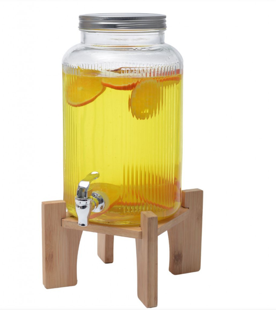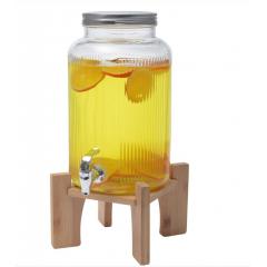 Limonádés üveg, italadagoló csappal fa tartó állvánnyal 5,5 l-es
