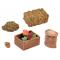 - egy zacskó gabonával, egy bála széna, szalma, káposzta, cékla, sárgarépa.