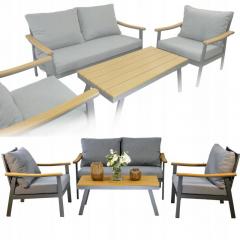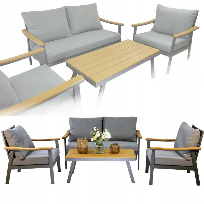 kerti szett a kényelem és a tartósság stílusos kombinációja. Tartalmaz egy kétszemélyes kanapét, két kényelmes fotelt és egy dohányzóasztalt . A kiváló minőségű anyagok felhasználásának köszönhetően a szett remekül mutat teraszon, erkélyen vagy a kertben.