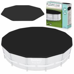 A takarófólia fémvázas, 360 cm es medencéhez van méretezve, fekete színű erős PE fóliából készült.