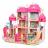 Ez a gyönyörű, nagy, rózsaszín ház bútorokkal és babákkal tökéletes hároméves vagy annál idősebb gyermekek számára. A nagy házban található egy hálószoba, nappali, TV-szoba, dolgozószoba, konyha, étkező, tárolóhelyiség, lépcső, erkély, csúszda, udvar és kapu. Minden szoba teljesen berendezett, a készlet két babát is tartalmaz. A készlet kiváló minőségű műanyagból készült, élénk, szemet gyönyörködtető színekben. A házhoz egy karton alap is tartozik. A készlet 2 db 1,5 V-os AAA elemmel működik (nem tartozék). Az elemek a ház világításához és zenéjéhez szükségesek.