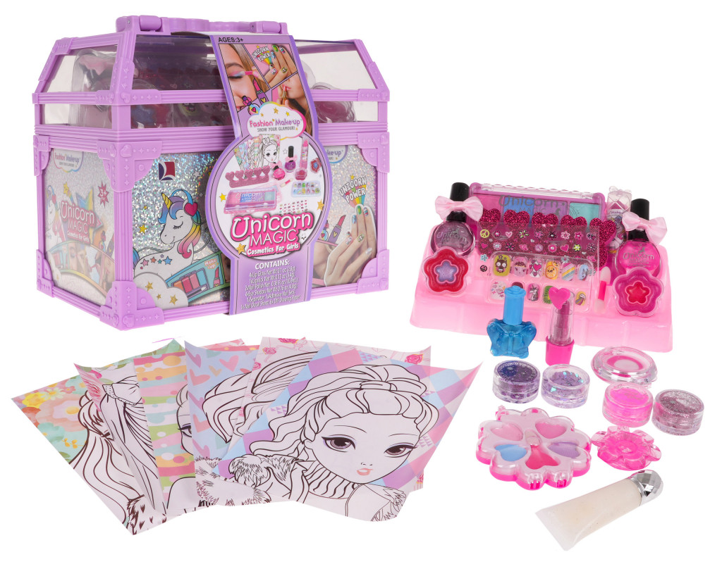 Egy unikornis dobozban lévő kozmetikai készlet 3 éves kortól ajánlott gyermekek számára. Egy nagy, tágas, fogantyús dobozban elfér egy kis hercegnő összes kozmetikuma. A készlet számos kozmetikumot tartalmaz, amelyek biztonságosak a gyermekek számára.