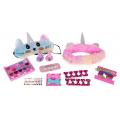 Gazdagon felszerelt sminkkészlet 5 éves kortól gyermekek számára. A kozmetikumok könnyen moshatók és biztonságosak a gyermekek bőrére. A készlet számos kiegészítőt tartalmaz, amelyek biztosan minden fiatal hölgyet elragadtatnak. A készlettel való játék serkenti a kreativitást, fejleszti az érzékeket és formálja az esztétika és a szépség érzékét.