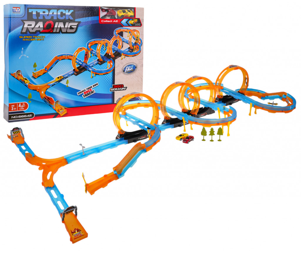Mega versenypálya 360 fokos hurkokkal, éles kanyarokkal, gyerekeknek 3 éves kortól.