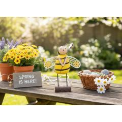 Ez a bájos, álló méhecske virággal egy egyedi dekoráció, amely vidám, tavaszi hangulatot varázsol bármilyen enteriőrbe. Aprólékos kidolgozásának és meleg színeinek köszönhetően tökéletes tavaszi és húsvéti dekorációhoz.
