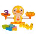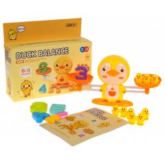 A játék egy mérlegből áll, benne egy aranyos kacsával , kis kacsákkal és számok formájú súlyokból, valamint egy matematikai feladatokkal ellátott kártyából.