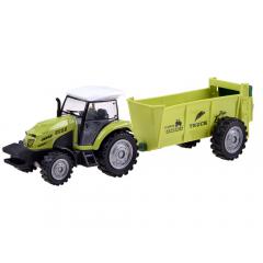 A pótkocsis traktor minden gazdaságban szükséges felszerelés. Ezt minden kis traktoros nagyon jól tudja, hogy pótkocsis traktor nélkül nem lehet megfelelően elvégezni a mezőgazdasági munkát. Ezért ez a készlet tökéletes lesz minden farmon, gyümölcsösben stb. A játéknak saját meghajtója van, súrlódó erővel, azaz a játék sima felületen történő mozgatásával felgyorsul, önállóan hajt.