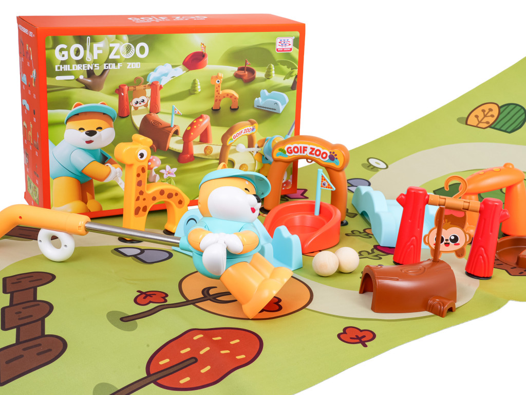 Golfpálya állatkerti állatokkal és habszivacs szőnyeggel három év feletti gyermekek számára. Ideális játék beltéri és kültéri játékhoz egyaránt. A pálya elemei kiváló minőségű, gyermekbiztos műanyagból készültek. Ez a játék tökéletes az aktív játékhoz. Gyermeked feladata, hogy a labdát a lyukba vezesse. A golfmackó egy ütőt tart kerékkel és csúszkával. A csúszkát magad felé mozgatva ütöd meg a labdát az ütővel. A labda fából készült, könnyű és simán gurul. A lyukat 3 db AG13 elem (tartozék) működteti. Amikor a labda a lyukba ér, fanfár hangja hallatszik.