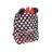 Eredeti dizájn: A hátizsák Minnie egér jellegzetes mintázatú piros-fehér színben, bájos piros masnival és fényes fülekkel.