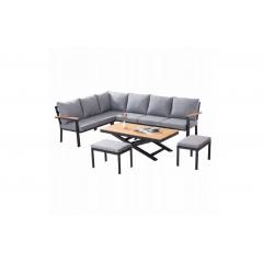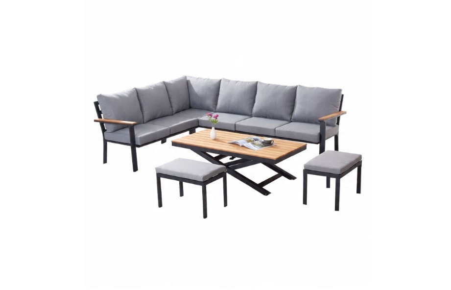 Teremtsen stílusos és kényelmes kültéri életteret! Ez az elegáns, 6 darabos kerti szett a modern alumínium dizájnt a teakfa természetes szépségével ötvözi , tökéletesen kiegészítve teraszát, kertjét vagy verandáját.