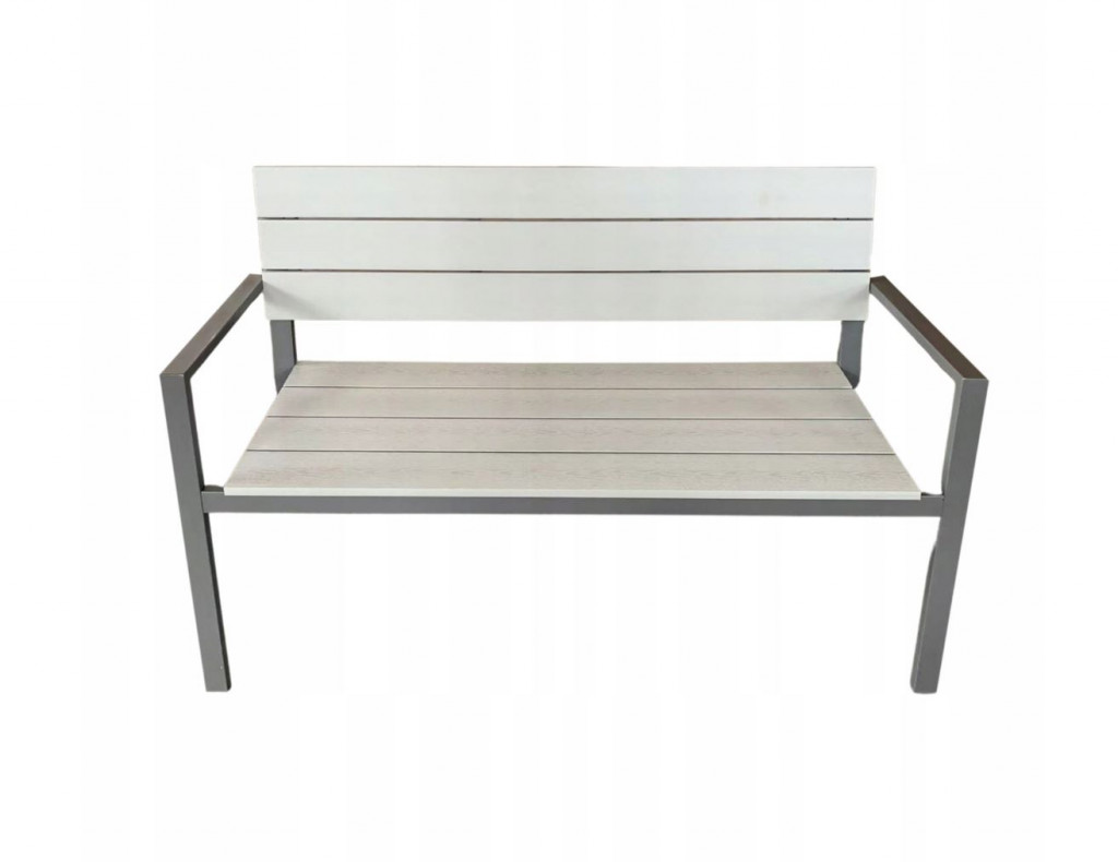 Modern szűrke műanyag kerti pad háttámlával 118 x 54 cm
