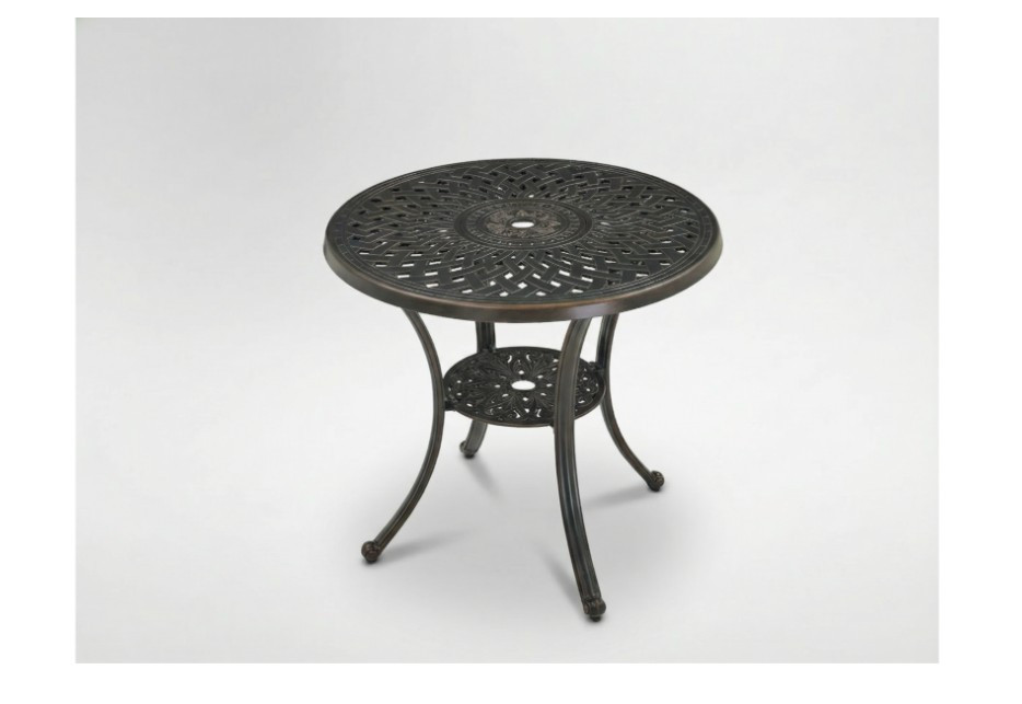 Az elegáns MONDRICH alumínium asztal tökéletesen ötvözi a klasszikus, antik stílust és a modern tartósságot. Kerek asztallapja és dekoratív kialakítása egyedi karaktert kölcsönöz neki, míg antik bronz (vörös réz) színe gyönyörűen fokozza kertje, terasza vagy erkélye stílusát.