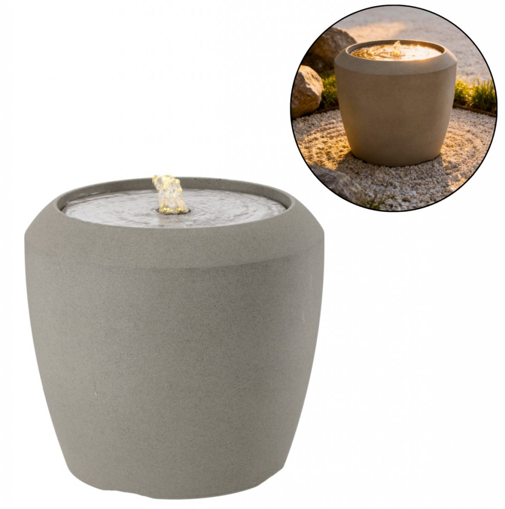Ez az elegánsan kidolgozott kerti szökőkút stílusos díszítőeleme bármilyen kültéri térnek. Egyszerű kialakításának és visszafogott színeinek köszönhetően tökéletesen kiegészíti a különféle dekorációkat. A felülről lefolyó lágy vízsugár pihentető hangulatot és finom hanghatást teremt. Tökéletes kertekbe és teraszokra.