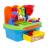 A munkapadra egy satu van felszerelve, mellyel babánk megtanulja a csavarozás és lecsavarás reflexét, amit zörgő hangok kísérnek majd. A műhelyben találunk szögeket a behajtáshoz és csavarokat a csavarozáshoz. A kiegészítő felszereléshez szerszámok tartoznak: egy csavarhúzó, egy villáskulcs és egy kalapács, mind olyan arányban, amely tökéletesen alkalmas a kisgyermekek kezére. A műhely remek hely a formák felismerésének és párosításának gyakorlására is. A műhely asztallapja válogatóval van felszerelve, amely tökéletesen fejleszti a gyermek képességeit. Minden elem, amit a megfelelő lyukakba illesztünk, megtalálható a játék alján található praktikus fiókban.
