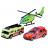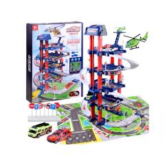 A járművek fém karosszériás. Fantasztikus többszintes parkoló benzinkúttal, lifttel, autószerelő műhellyel, helikopter leszállóhellyel.
