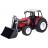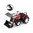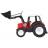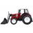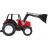 Nagy piros traktor mozgatható karral, kanállal és nagy kerekekkel