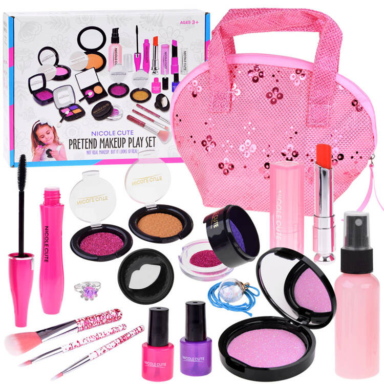 Egy elbűvölő sminkkozmetikai készlet egy elegáns, fényes kozmetikai táskában valószínűleg minden olyan kislányt elragad majd, aki szeret a formázással és a sminkkel játszani.