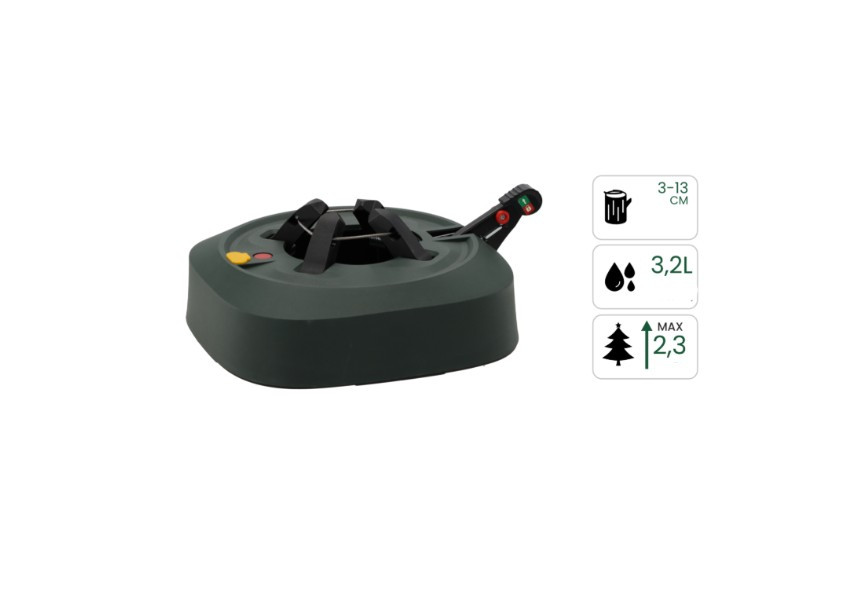 Ez a praktikus megoldás lehetővé teszi, hogy akár 2,3 m magas karácsonyfát is stabilan elhelyezhessen. Innovatív rendszerének köszönhetően az összeszerelés kézi szerelés nélkül is lehetséges. A nagy, 3,2 literes víztartály hosszabb ideig frissen tartja a fát, a robusztus műanyag és fém konstrukció pedig hosszú távú stabilitást biztosít.