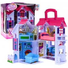 Minden lány számára vonzó lehet ez a csodálatos, összecsukható, többszintes villa, amely nyitható ajtókkal, ablakokkal, szobákkal és hordozófogantyúval van felszerelve.