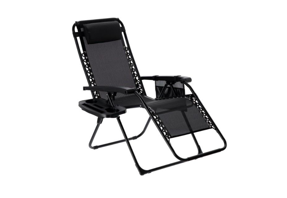 ÖSSZECSUKHATÓ KERTI SZÉK "ZÉRÓ GRAVITÁCIÓ" ÁLLVÁNNYAL, ZSEBBEL ÉS FEJTÁMLÁVAL, FEKETE