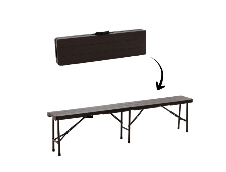 Ez a praktikus összecsukható pad nagyszerű megoldás mindazok számára, akik értékelik a kényelmet és a mobilitást. 180 cm hosszúságával kényelmes ülőhelyet biztosít több ember számára – tökéletes piknikhez, grillezéshez, kerti partihoz vagy kempingezéshez!