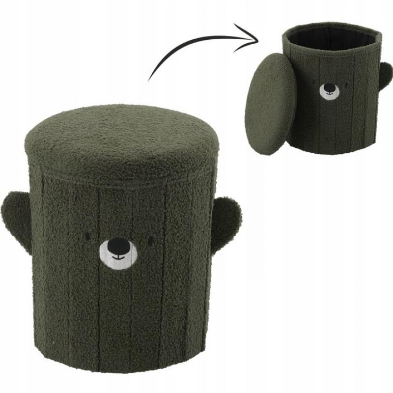 Összecsukhatós macis tároló puff - zöld színben 28 x 28 x 34 cm