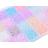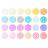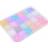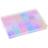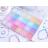 A készletünk 24 különböző színű gyöngyöt tartalmaz , pasztell árnyalatokban: rózsaszín, lila, kék, bézs, zöld, fehér és sárga. Átlátszó, hosszúkás, bőröndre emlékeztető csomagolásban vannak, amely ablakokra van osztva.