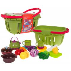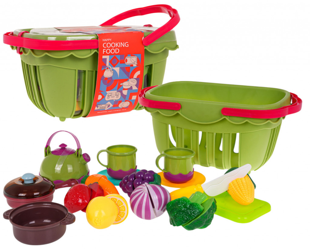 Kiegészítőkkel ellátott kosár 3 éves vagy annál idősebb gyermekek számára. A készlet tartalmaz egy piknikkosarat, egy fedős edényt, egy zöldség- és gyümölcsaprító deszkát, egy kést, egy serpenyőt, tányérokat, poharakat és tépőzáras gyümölcs- és zöldségmaketteket. Ideális módja a kültéri játéknak.