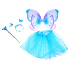 A négyrészes jelmez tartalma egy pillangószárny,szoknya,fejdisz és pillangós varázspálca. Ebben a jelmezben csodálatos kis pillangóként fogsz tündökölni halloweenkor és farsangkor egyaránt! A fejdisz hajráfon két pillangó található, a szárnya pedig több varázslatos színben pompázik. A csodálatos pillangó jelmezhez kis szoknya is jár,amitől még tökéletesebb pillangó lehetsz.