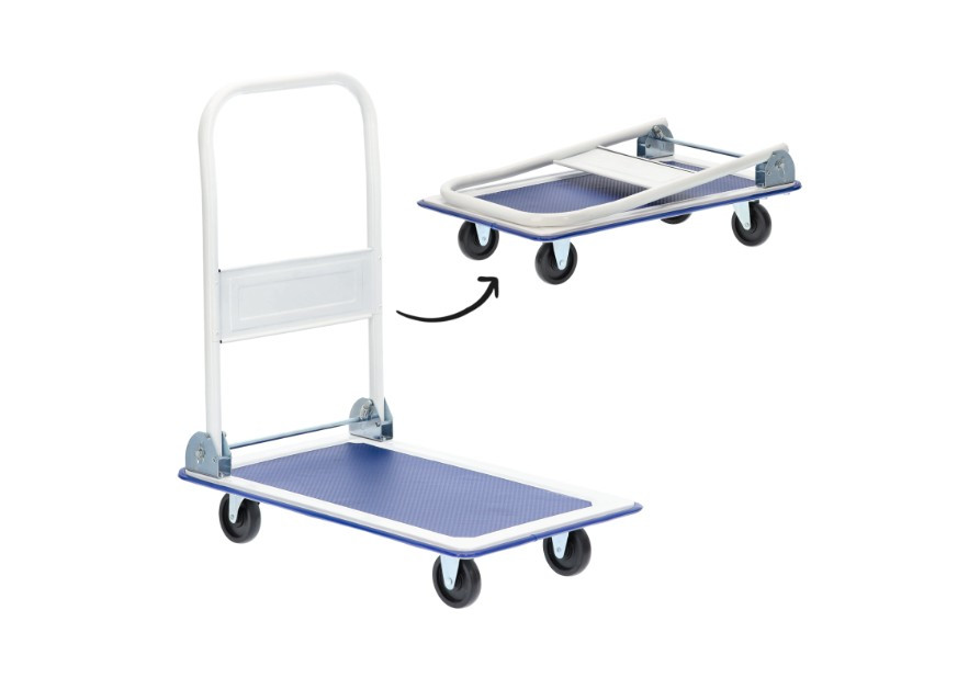 Praktikus, porszórt acélból készült platformkocsi, amely könnyű és nehéz, akár 150 kg-os terhek szállítására is alkalmas. Forgókerekekkel van felszerelve a könnyű manőverezhetőség és egyszerű összecsukható mechanizmussal a könnyű tárolás érdekében, ezt a terméket önállóan kell összeszerelni.