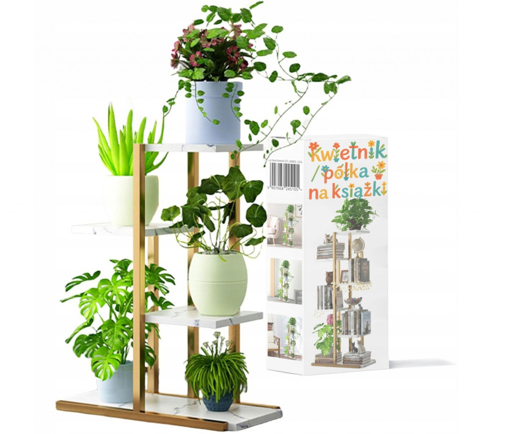 Elegáns és funkcionális állvány virágokhoz, cserepekhez és dekorációkhoz. A masszív fémkeret és a laminált lapból készült polcok tartósságot biztosítanak, míg a sokoldalú kialakításnak köszönhetően tökéletesen illik nappaliba, irodába, erkélyre vagy teraszra.