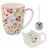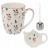 Porcelán bögre virágmotívummal, teagolyóval - 350ml