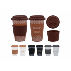 Porcelán utazó kávés pohár, szilikonos fogórésszel- 390ml -barna