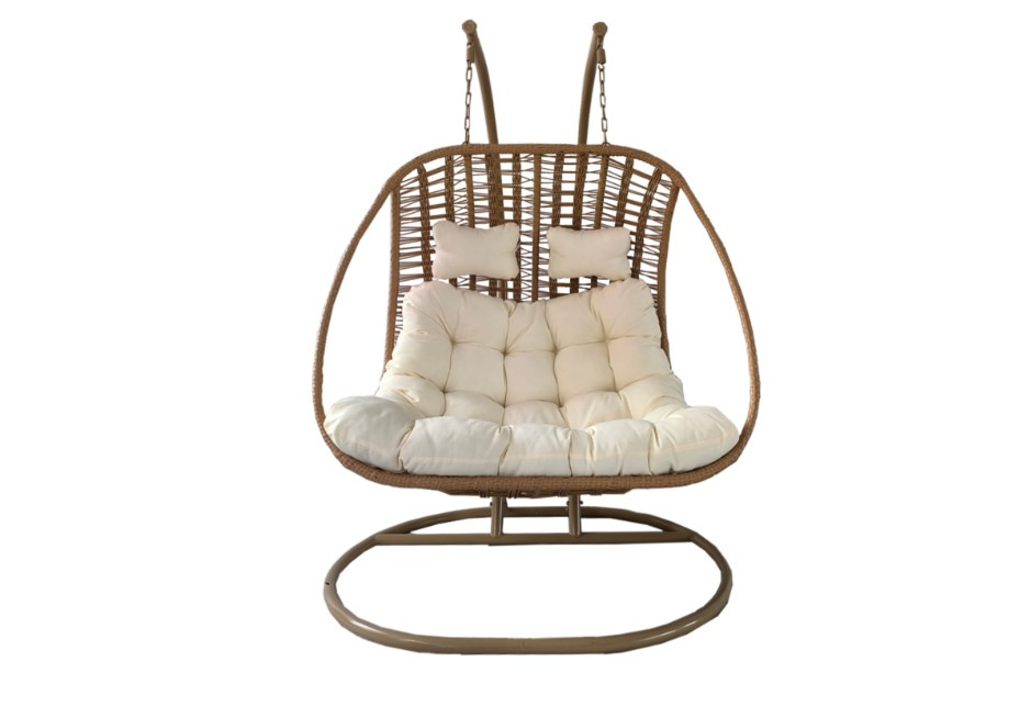 KÉTSZEMÉLYES FÜGGŐFOTEL – TERMÉSZETES SZÍN, KRÉM PÁRNA, TERMÉSZETES VÁZ