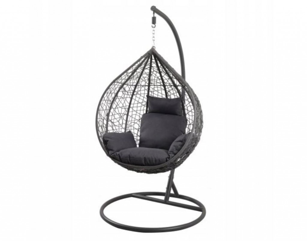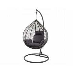 Rattan függőfotel sötétszürke színben, sötétszürke ülőpárnával L-es méretben