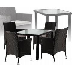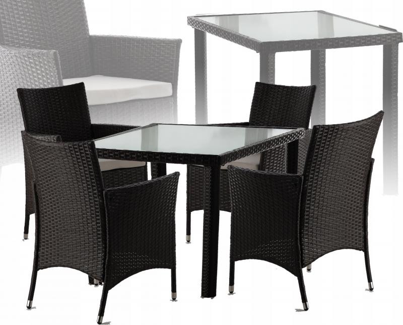 NAGY RATTAN KERTI BÚTOR GARNITÚRA ASZTAL 4 SZÉK TERASZRA VAGY ERKÉLYRE