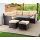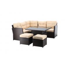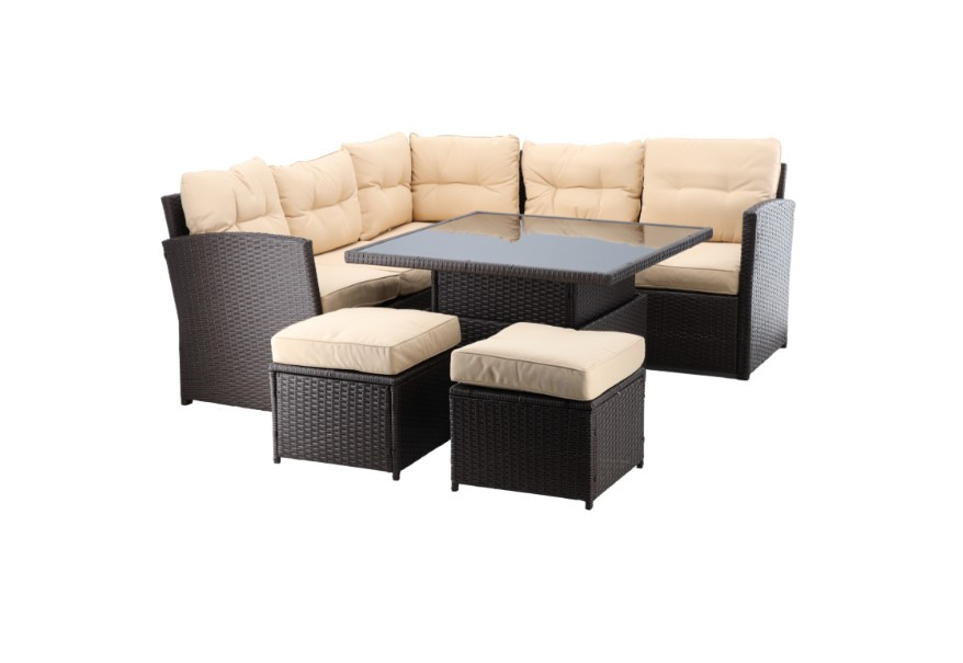 Egy elegáns és kényelmes helyről álmodozol, ahol a szabadban pihenhetsz? Fedezd fel rattan bútorgarnitúránkat , amely gyönyörűen ötvözi a stílust, a kényelmet és a funkcionalitást. Ez a garnitúra egy sarokkanapét, két puffot és egy állítható asztalt tartalmaz, így tökéletes környezetet biztosítva neked és szeretteidnek a kikapcsolódáshoz.