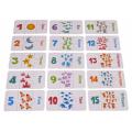 A rejtvényből 15 táblát rendezhetünk el egy számmal, a hozzá tartozó képes ábrákkal és a szám angol megfelelőjével.