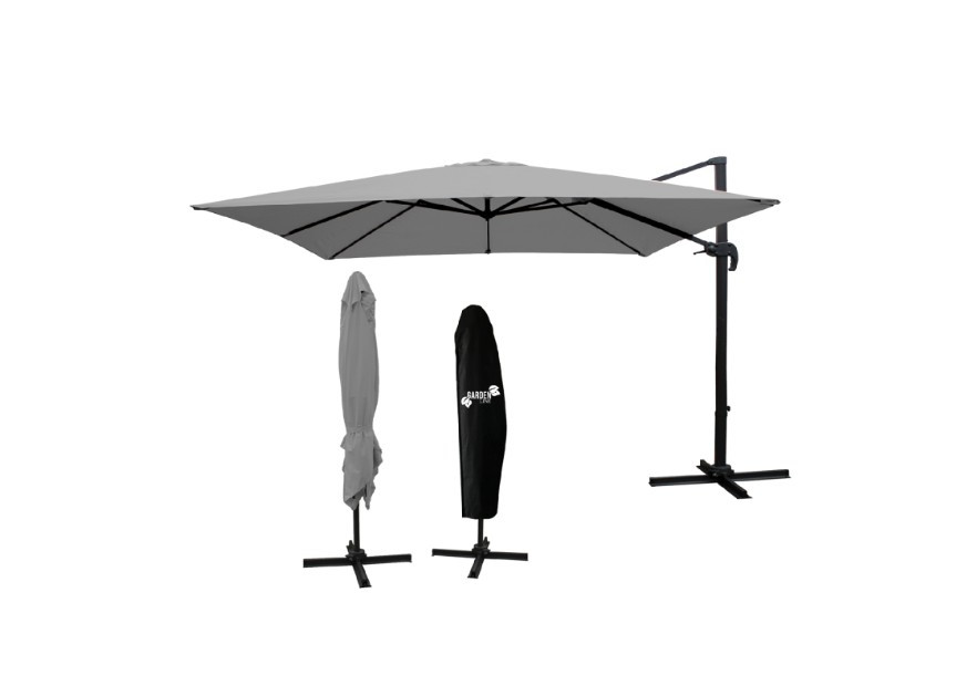 Az esernyő állítható dőlésszöggel és forgathatósággal rendelkezik, így védelmet nyújt a napsugarak ellen, azok szögétől függetlenül.