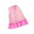 - Ruha – egy bájos fehér ruha finom rózsaszín kockás mintával. Az ujjatlan szabás könnyed, lányos jelleget kölcsönöz neki. Az alsó szegélyen lévő fodros rész extra eleganciát kölcsönöz. A ruha hátul tépőzárral rögzíthető, így könnyen fel- és levehető.