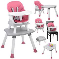 Az etetőszék egy 6 az 1-ben készlet, amely 6 hónapos kortól ajánlott. Modern stílusú, moduláris bútordarab bármely gyerekszobába, nappaliba vagy konyhába beilleszthető. Többféle felhasználási lehetőségének köszönhetően az étkezőasztalhoz, valamint a játszósarokhoz is illeszkedik. Kényelmes, megfelelően kontúrozott ülés, ötpontos biztonsági övek, blokád a székről lecsúszás ellen. Az ülés borítására légáteresztő, könnyen tisztítható anyagból készült. A bútor kivehető, könnyen tisztítható tálcával rendelkezik. A szék lábai csúszásgátló párnákkal vannak ellátva.