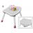 Az ülőke könnyen összeszerelhető, ennek köszönhetően nem lesz nehéz átalakítani sem. A ráerősített, betétekkel ellátott asztallap tökéletes a kockákkal való játékhoz.
