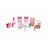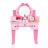 Rózsaszín fa fésülködőasztal kis székkel és kiegészítőkkel