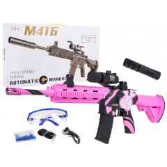 A nagyméretű M416 géllövedékes puskát tizennégy éves vagy annál idősebb gyermekek számára ajánljuk. Speciális hidrogel pelletekkel kell használni, amelyek becsapódáskor szétrepednek. Ehhez a modellhez 7-8 mm átmérőjű pelletek szükségesek. A készlet tartalmaz egy tasak előkészítetlen pelletet. A pelleteket úgy készítik elő, hogy vizet öntenek rájuk, és körülbelül 4-6 órán át állni hagyják. Ezután a felesleges vizet leöntik, és a töltények készen állnak. A puska manuális és automatikus üzemmóddal rendelkezik. A pisztoly irányzéka nagyítóval van felszerelve, a célpont távolsága pedig egy gombbal állítható. A játékot egy 7,4 V-os elem táplálja (tartozék).