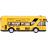 Sárga busz nyíló ajtókkal fény- és hanghatással