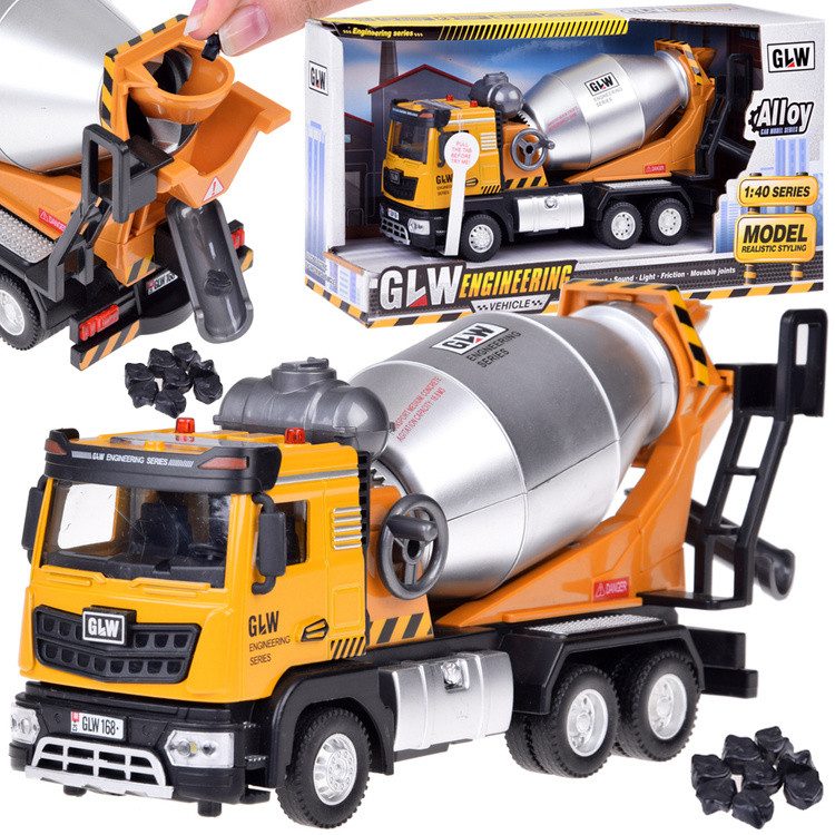 Egy betonmixer hang és fénnyeffektusokkal - ajánlat minden kis építőmunkásnak. Ezzel a forgódobbal ellátott kis építőjáték egy teljesen új dimenzióba kerül! Az autó nagyon valósághűen készült, a legapróbb részletekre is odafigyelve. Az autó hang- és fényeffektusokkal van felszerelve, ami valósághűvé teszi a vele való játékot. A járműnek van egy mozgatható dobja és egy nyitható kabinja, amely a motorba néz.