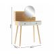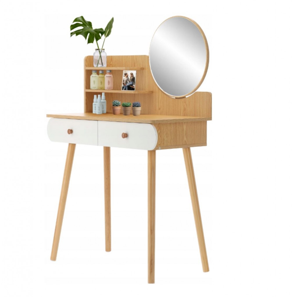 A fésülködőasztal egyszerű, skandináv kialakítását a skandináv stílusra jellemző egyszerűség és minimalizmus jellemzi. Az élénk színek, a természetes anyagok és az ergonomikus formák harmonikus egészet alkotnak.
