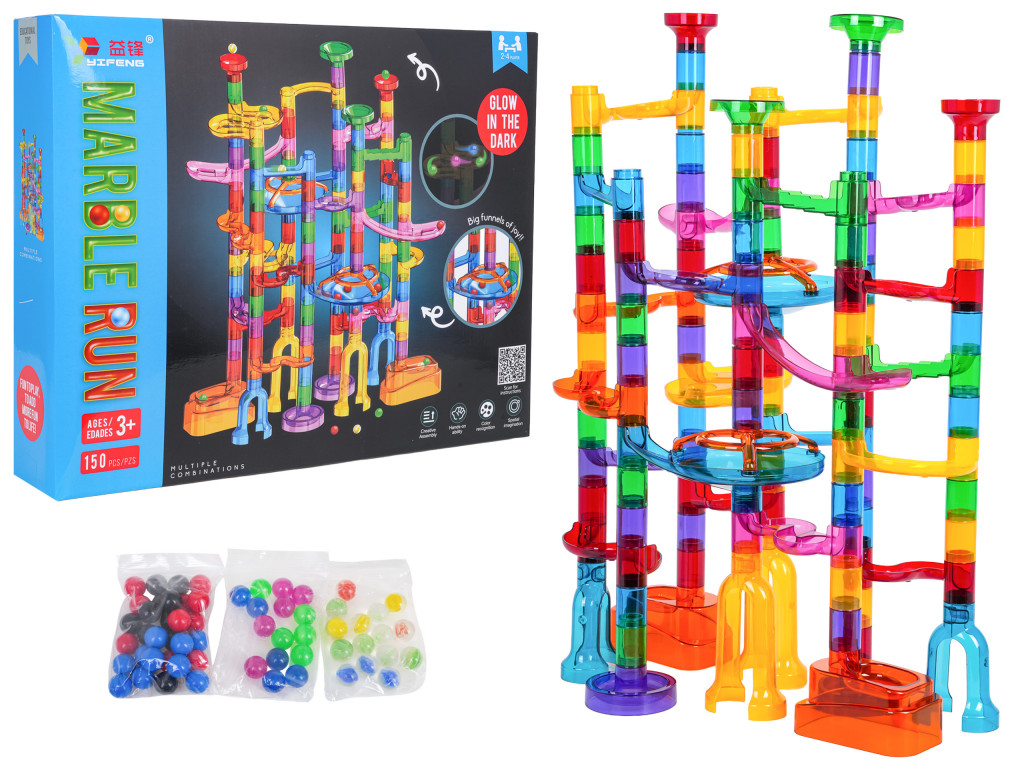 Színes, tartós, önszerelhető pálya sötétben világító labdákkal hároméves vagy annál idősebb gyermekek számára. A móka abból áll, hogy saját kezűleg kell megépíteni a pályaszerkezetet, majd a labdákat az alagutakban kell kilőni. A labdák kilőése és a kanyargós alagutakban való navigálásuk nézése örömteli, nyugtató és pihentető élmény. Ez a játék pozitívan hat a kreativitásra, a képzeletre és a kézügyességre.